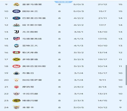 歐洲冠軍杯在上賽季進(jìn)行改制后,第一階段的聯(lián)賽階段就非常激烈,尤其是打到最后一輪,36支球隊(duì)一晚上要打18場(chǎng)對(duì)決,足夠看得眼花繚亂。不僅考驗(yàn)各支球隊(duì)的意志力,也在比拼算數(shù)能力:最后時(shí)刻需要幾個(gè)凈勝球。
