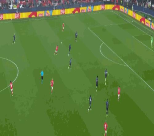 第58分鐘,姆巴佩低射破門達成雙響,居萊爾助攻,皇家馬德里2-3本菲卡!