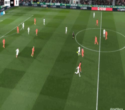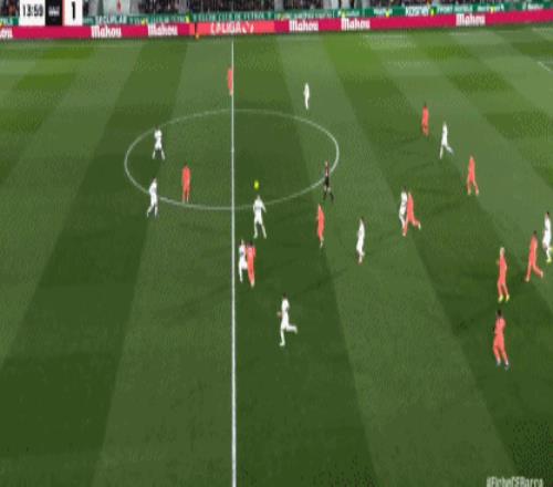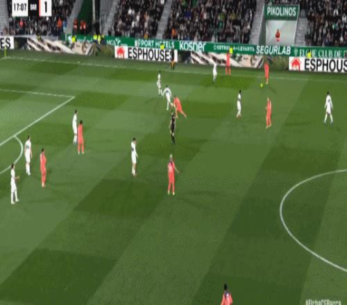 第44分鐘,巴薩好機會不斷,費爾明打門又高出