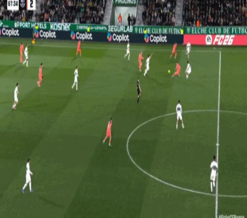 第29分鐘,埃里克-加西亞造越位失敗,阿爾瓦羅-羅德里格斯單刀破門,埃爾切將比分扳成1-1平手,雙方回到同一起跑線,比賽重新出現(xiàn)懸念。