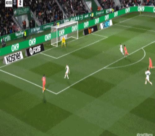 第34分鐘,費(fèi)蘭-托雷斯連續(xù)攻門,1秒內(nèi)2次射門均擊中門框。