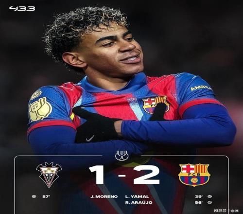 國王杯1/4決賽,巴薩客場2-1戰(zhàn)勝阿爾瓦塞特,晉級國王杯四強,取得各項賽事5連勝。亞馬爾連場破門,德容助攻,阿勞霍收獲回歸首球,拉什福德角球助攻,哈維-莫雷諾扳回一城。