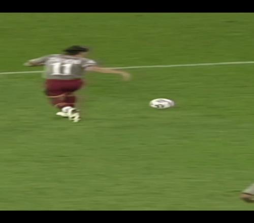 2005-06賽季羅馬德比,塔代伊上半場的進球奠定了勝利的基礎(chǔ),對陣國際米蘭,他在上半場第9分鐘就打進了閃電戰(zhàn),其實這個賽季的巴西人有點非典型,他正常在兩個邊路活躍。