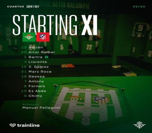 北京時間2月6號凌晨4點,西班牙國王杯1/4決賽展開一場焦點戰(zhàn)役,馬競對陣貝蒂斯。賽前,雙方公布首發(fā)陣容。