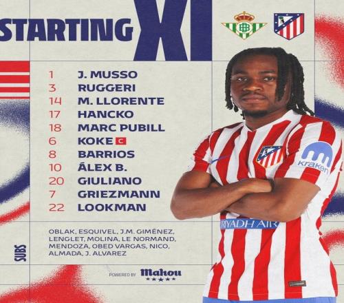 馬競客戰(zhàn)貝蒂斯:格列茲曼、小西蒙尼首發(fā),盧克曼首秀