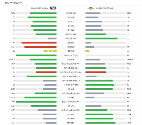 北京時間2月9日西班牙足球甲級聯(lián)賽 聯(lián)賽 第23輪,馬德里競技主場對陣皇家貝蒂斯。上半場安東尼內(nèi)切遠射破門,補時階段盧克曼頭球破門,但越位進球無效。下半場格列茲曼造迭戈-略倫特烏龍,但裁判示意此前越位,進球無效。最終馬競兩球被吹0-1不敵貝蒂斯。