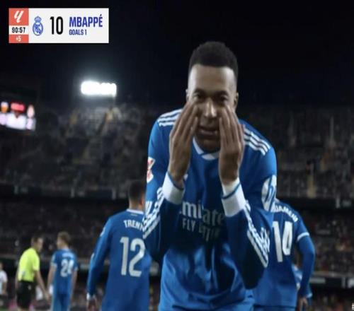 此役客場對(duì)陣瓦倫西亞,首發(fā)出戰(zhàn)的姆巴佩在比賽第91分鐘打入一球,幫助皇馬取得2-0領(lǐng)先。