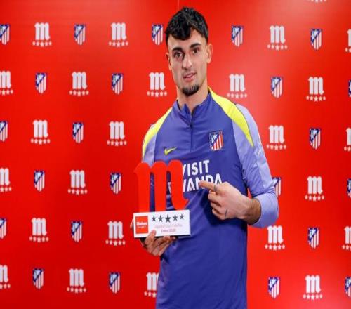 當(dāng)?shù)貢r間2月11日,這位西班牙后衛(wèi)領(lǐng)取了馬競1月最佳球員獎杯。