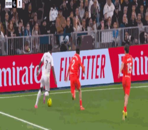 第19分鐘,皇家社會右路壓上,索萊爾禁區(qū)前沿精妙直塞,埃雷拉插上突入禁區(qū)搶點,郝伊森回防將埃雷拉鏟倒,主裁吹罰了點球。奧亞薩瓦爾操刀主罰一蹴而就,皇家社會1:1扳平比分。僅過了3分鐘,皇馬這邊就做出回應,維尼修斯左路強行突破殺入禁區(qū),一個急停變向,回防的阿蘭布魯伸腳將維尼修斯絆倒,主裁又是果斷吹罰點球,維尼修斯親自操刀主罰也穩(wěn)穩(wěn)命中,皇馬2:1快速的再次取得領先。第30分鐘,皇馬左路壓上,連續(xù)的傳遞,卡雷拉禁區(qū)前沿策應橫傳巴爾韋德接球稍作調整,轉身右腳大力兜射,皮球應聲入網,皇馬5分鐘連進2球,3:1擴大領先優(yōu)勢。