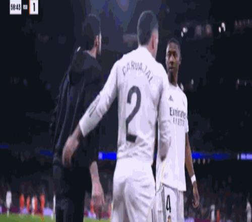 第59分鐘,皇馬換人,阿拉巴和卡瓦哈爾替補(bǔ)登場(chǎng)