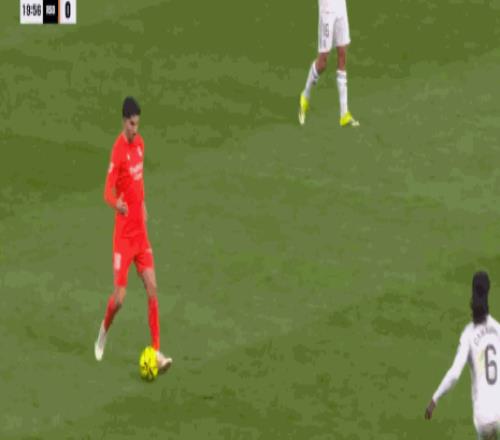第44分鐘,維尼修斯突破虛晃后射門,被皇家社會(huì)后衛(wèi)擋出