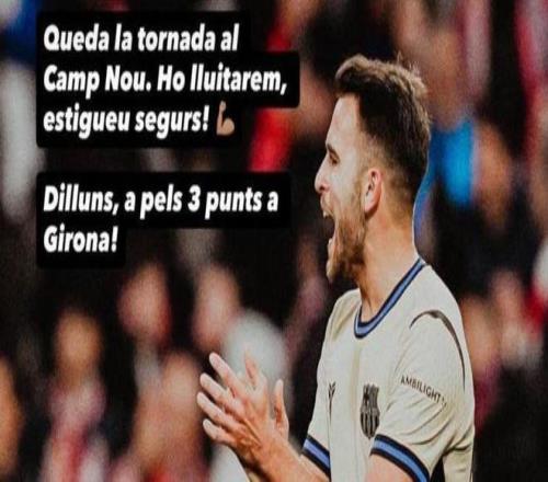 埃里克-加西亞配上了一張自己在比賽中鼓掌的照片,呼吁球隊在諾坎普次回合賽事中拿出回應表現(xiàn),同時也將目光對準了接下來對陣赫羅納的聯(lián)賽賽事。