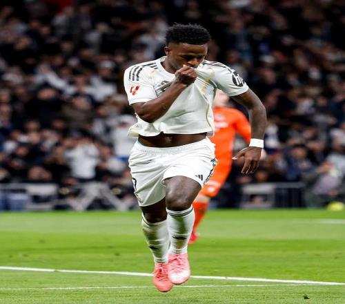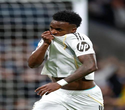 90' 維尼修斯頭槌破門被吹,錯失帽子戲法。