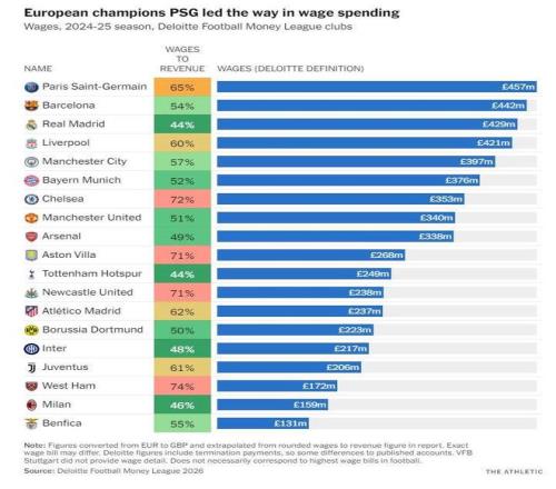 根據(jù)德勤財(cái)報(bào)的數(shù)字顯示,巴薩在2024-25賽季的人員總成本是5.15億歐元(4.42億英鎊)。所以巴薩想要滿足工資帽要求,就需要填補(bǔ)這一塊的空白。