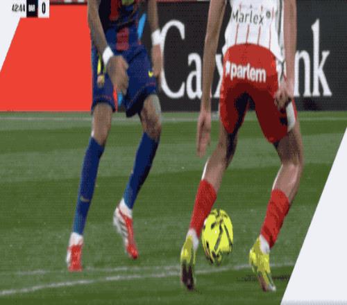 之后的25分鐘,巴薩占據(jù)了場面上的絕對(duì)主動(dòng)。第43分鐘,拉菲尼亞的射門打穿防守球員的小門,可惜皮球擊中立柱。