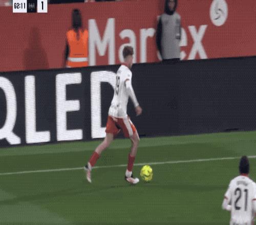 下半場開始后,巴薩繼續(xù)猛攻,第58分鐘,亞馬爾將球傳到后點(diǎn),拉菲尼亞的射門打在林孔的頭上出了底線,拉菲尼亞無奈苦笑。