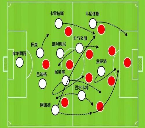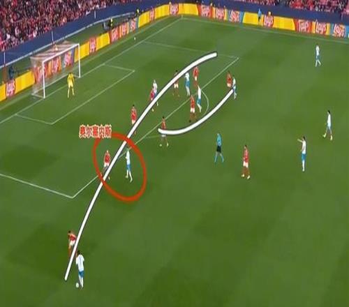 皇馬邊后衛(wèi)雖然個(gè)人能力強(qiáng),但力量并不算好,穆里尼奧在肋部落防使用運(yùn)動(dòng)能力很強(qiáng)的巴列羅就很有針對(duì)性,同時(shí)奧爾塞內(nèi)斯二次移動(dòng)和選位完成攔截,也是一個(gè)亮點(diǎn)。