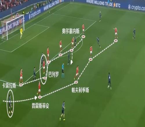 尤其是在姆巴佩進(jìn)禁區(qū)的同時(shí),巴列羅可以限制住皇馬無(wú)球球員的接應(yīng)線路,這一點(diǎn)很重要。