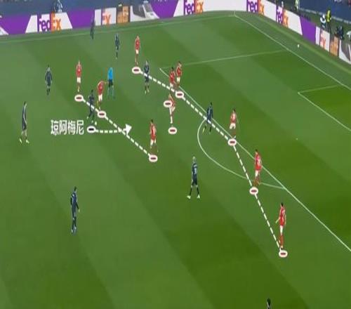 這一次的進(jìn)攻,最初來(lái)自于瓊阿梅尼的遠(yuǎn)射,在被封堵之后,皮球轉(zhuǎn)移到側(cè)翼,隨后傳中球打禁區(qū)后點(diǎn)。
