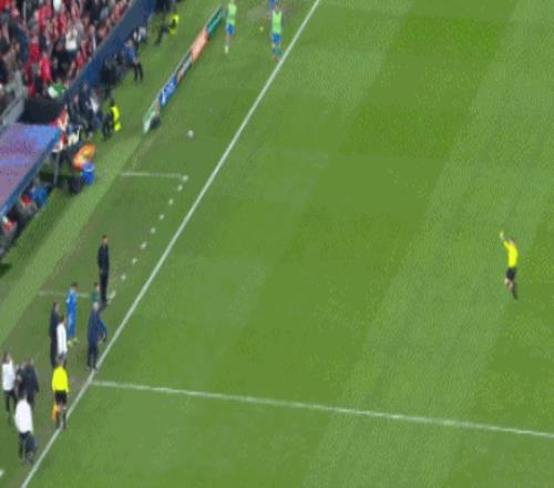 第85分鐘,本菲卡的進攻,里奧斯被維尼修斯、卡馬文加聯(lián)合夾擊撞翻在地,本菲卡獲得任意球。