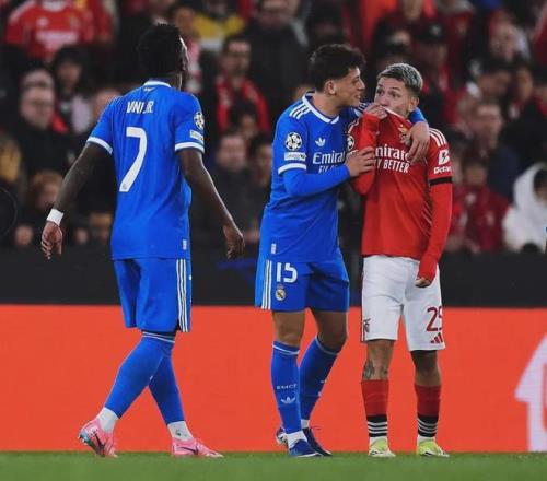 更荒誕的劇情還在上演:補(bǔ)時階段,阿根廷世界杯冠軍成員奧塔門迪竟然向維尼修斯亮出了自己的冠軍紋身,兩人相視而笑——這是挑釁?是嘲諷?還是一種詭異的“尊重”?而在球員通道外,本菲卡主席魯伊·科斯塔甚至被曝與皇馬工作人員發(fā)生肢體沖突。