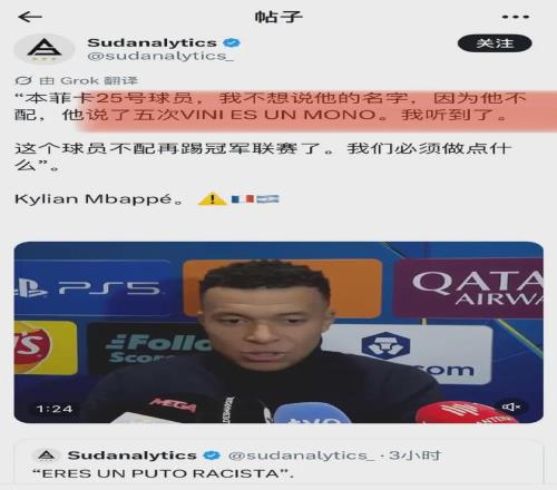 正方: 姆巴佩賽后面對鏡頭擲地有聲:“我親耳聽到了,對方25號球員先后叫了維尼修斯5次‘猴子’?!边@不僅是隊(duì)友的聲援,更是將歧視坐實(shí)的致命一擊。維尼修斯在替補(bǔ)席上的憤怒與無奈,看臺上飛來的電子煙和雜物,似乎都在佐證這并非空穴來風(fēng)。