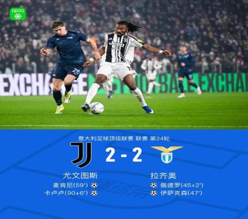 北京時間2月9日意大利足球頂級聯(lián)賽第24輪,尤文圖斯主場對陣?yán)R奧。 上半場佩德羅抽射變線破門,庫普梅納斯破門被吹,下半場伊薩克森擴(kuò)大比分,麥肯尼扳回一球,卡盧盧絕平比分。最終尤文圖斯與拉齊奧戰(zhàn)成2-2平。