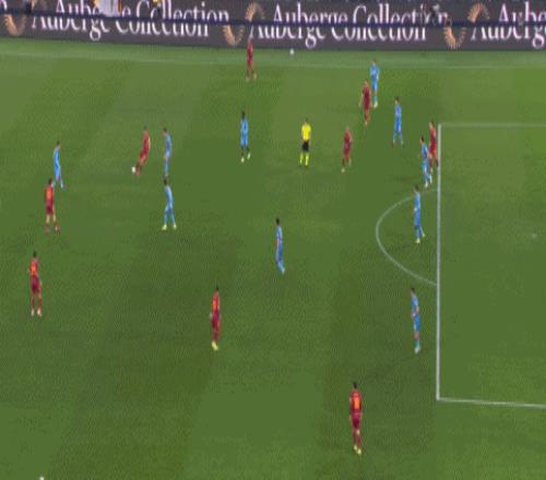 第24分鐘,先拔頭籌,馬倫前插小角度巧射破門,羅馬1-0