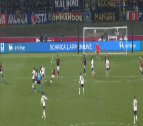 第33分鐘,博洛尼亞左側(cè)角球,卡斯特羅搶點(diǎn)破門,博洛尼亞1-0拉齊奧