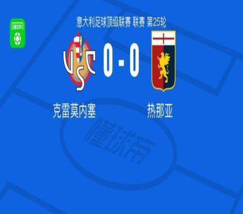 北京時(shí)間2月15日意大利足球甲級(jí)聯(lián)賽第25輪,克雷莫內(nèi)塞主場(chǎng)迎來(lái)熱那亞的挑戰(zhàn)。全場(chǎng)比賽結(jié)束,兩隊(duì)均未攻破對(duì)方球門,最終克雷莫內(nèi)塞0-0戰(zhàn)平熱那亞。