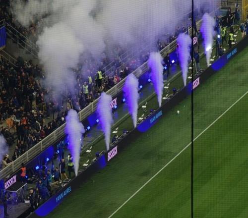 北看臺(tái)的死忠球迷區(qū)旗幟一直在飄揚(yáng)。整個(gè)北看臺(tái),從下到上全都是死忠球迷。整場(chǎng)比賽,他們都在歌唱,歡呼,主隊(duì)進(jìn)球時(shí)會(huì)瘋狂慶祝,裁判的判罰稍微令他們不滿(mǎn)意,刺耳的噓聲則會(huì)響徹全場(chǎng)。