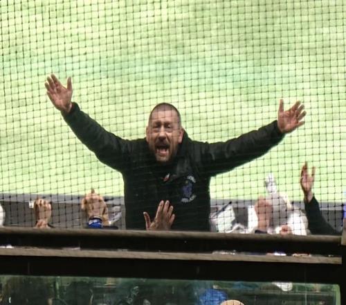 我錯(cuò)過(guò)了這個(gè)絕殺球,但并沒(méi)有錯(cuò)過(guò)一個(gè)精彩的華章:與我一同下樓的四個(gè)國(guó)米球迷在瘋狂慶祝,突然一個(gè)從后面撲向我,一邊喊著“goal”,一邊與我擁抱慶祝。其他幾個(gè)國(guó)米球迷也涌上來(lái)。我們至少是從三四級(jí)臺(tái)階下跌落下來(lái),好在樓梯下面的國(guó)米球迷接住了我們,沒(méi)有人摔倒。更多的人因此摟抱在一起,其中一個(gè)球迷還用雙手拍了拍我的臉。把我摟抱下臺(tái)階的哥們眼鏡都差點(diǎn)掉了,而我的腳踝則有一點(diǎn)點(diǎn)輕微扭傷。