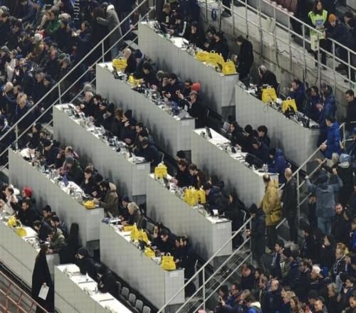 接到朋友發(fā)來(lái)的消息后,我提前下臺(tái)階前往玻璃隔板的位置,方便退場(chǎng)。我小心翼翼盯著臺(tái)階下樓,突然振聾發(fā)聵的歡呼聲傳來(lái),澤林斯基絕殺尤文。
