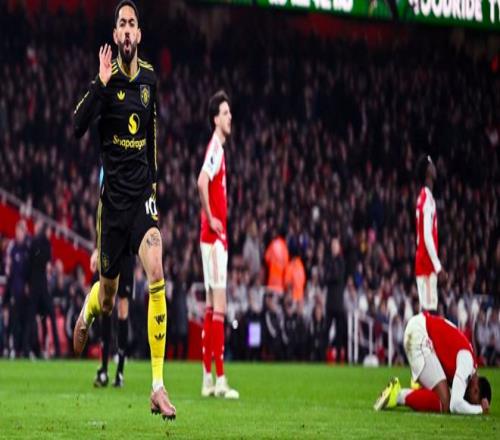 比分落后的紅魔開啟了狂轟濫炸的模式,姆伯莫和B費連續(xù)威脅槍手的球門。