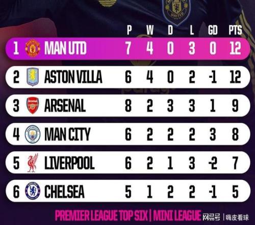 統(tǒng)計表明,英超積分榜前六名組成的小循環(huán)中,曼聯(lián)7場得到12分,高居第一,阿森納8場只有9分,強強對話的能力遭到質疑,阿斯頓維拉很不錯,6場就拿到12分,是排名很高的重要因素。從另外一個角度看,曼聯(lián)面對非前六名的球隊,16場只得26分,場均只有1.63分,比強強對話的場均1.71分還要低。