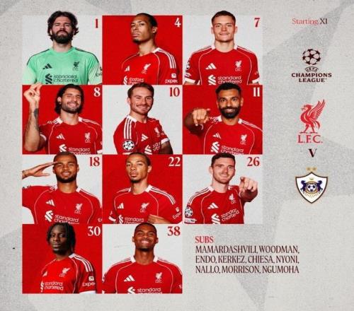 利物浦vs卡拉巴赫:薩拉赫、維爾茨首發(fā),羅伯遜、加克波出戰(zhàn)