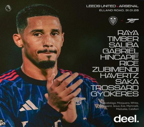 利茲聯(lián)vs阿森納:哲凱賴什、哈弗茨首發(fā),特羅薩德、薩卡出戰(zhàn)