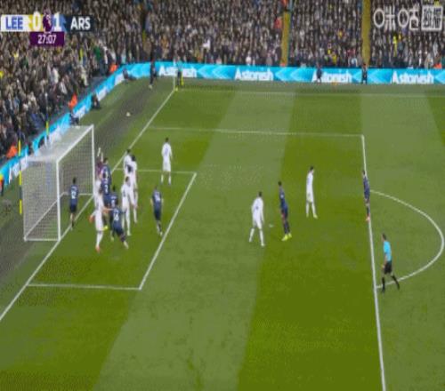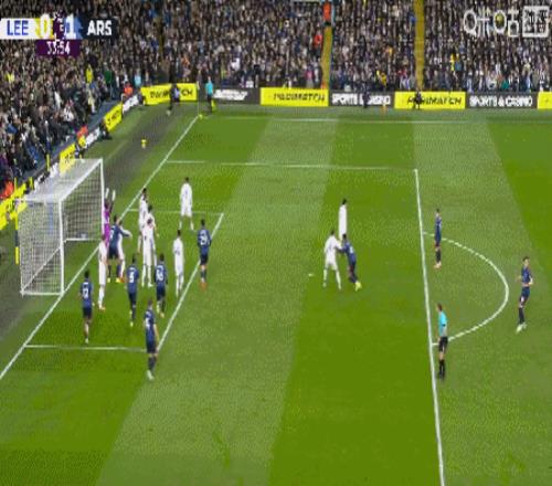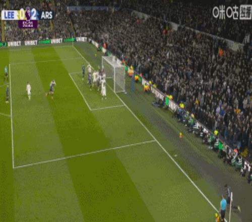 第38分鐘,阿森納開出角球造利茲聯(lián)門將烏龍,阿森納客場2-0領(lǐng)先!