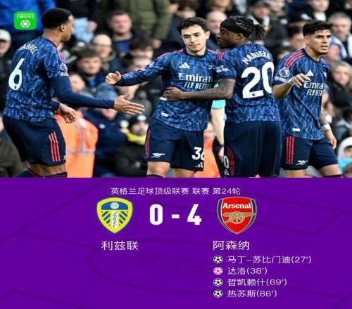 北京時(shí)間1月31日英超聯(lián)賽第24輪,利茲聯(lián)主場對陣阿森納。賽前薩卡熱身受傷,上半場,首發(fā)登場的馬杜埃凱表現(xiàn)亮眼,他先是助攻蘇比門迪頭球破僵,隨后又通過角球造成達(dá)洛自擺烏龍。下半場,替補(bǔ)登場的馬丁內(nèi)利助攻哲凱賴什擴(kuò)大領(lǐng)先,同樣替補(bǔ)登場的厄德高助攻熱蘇斯鎖定勝局。最終,阿森納客場4-0大勝利茲聯(lián),先賽一場7分領(lǐng)跑。
