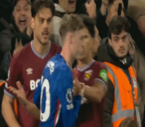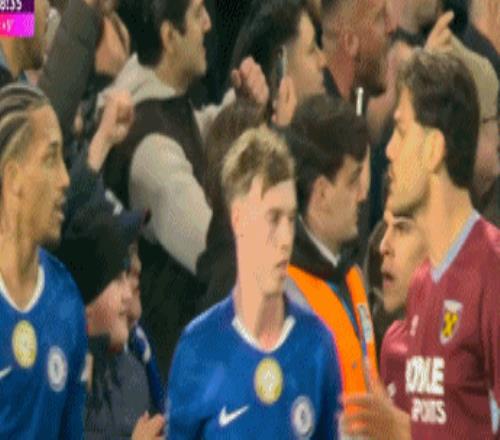 沖突中,西漢姆聯(lián)后衛(wèi)托迪博上來鎖喉佩德羅,中途希臘國(guó)腳馬夫羅帕諾斯還一巴掌想扇帕爾默,慶幸的是帕爾默反應(yīng)敏捷迅速躲開,才免遭對(duì)手偷襲。而佩德羅再次為隊(duì)友出頭,怒推馬夫羅帕諾斯。