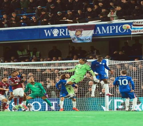 在比賽的最后時刻,西漢姆聯(lián)門將阿雷奧拉棄門而出做最后一搏,但與他對位的特雷沃-查洛巴成功將球解圍,幫助切爾西留住勝利。