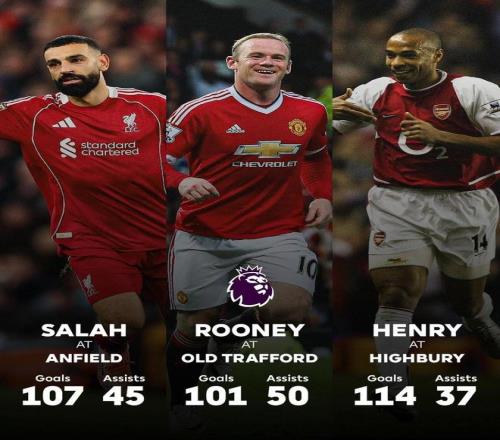 在單一球場(chǎng)英超參與152球,薩拉赫打破亨利、魯尼紀(jì)錄