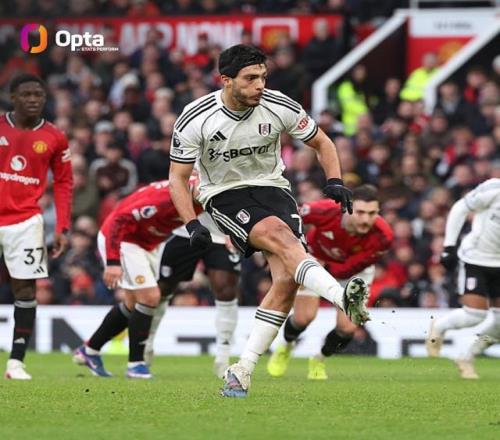 此役對陣曼聯(lián),勞爾-希門尼斯在比賽第85分鐘主罰點球破門。