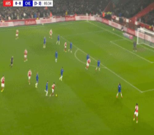 第90+8分鐘,哈弗茨過掉桑切斯,隨后低射破門,阿森納1-0切爾西