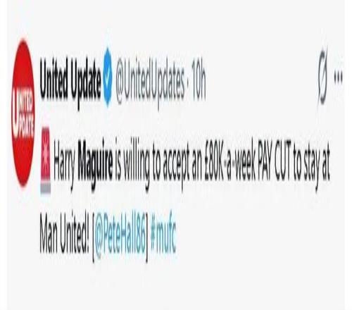 但據(jù)其報(bào)道,如果馬奎爾愿意接受大幅降薪,每周少拿約8萬英鎊,并同意俱樂部新約的其他條件,就仍有可能留在球隊(duì)。在報(bào)道中,英媒所說的是:if the England international is willing to take a substantial pay cut of about £80,000 a week,而社媒忽略了「if」的假設(shè)前提,并且將每周降薪8萬英鎊誤解為「降薪至8萬英鎊」。