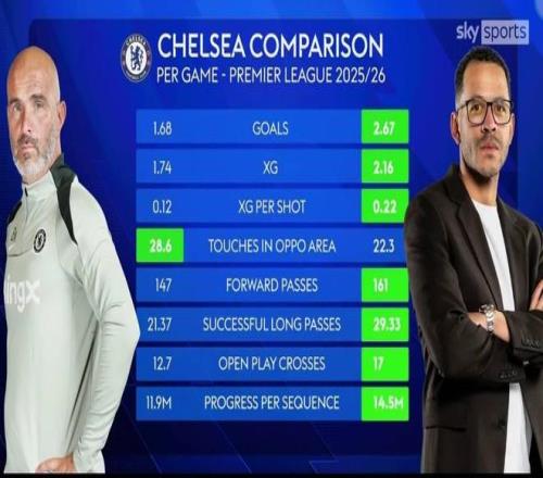 根據(jù)天空體育的統(tǒng)計,羅塞尼爾時代的切爾西在本賽季英超聯(lián)賽中,進(jìn)球、預(yù)期進(jìn)球、每次射門的預(yù)期進(jìn)球、向前傳球、成功長傳數(shù)、運(yùn)動戰(zhàn)傳中、每次序列推進(jìn)距離*等7項數(shù)據(jù)優(yōu)于馬雷斯卡時代,僅對方禁區(qū)觸球數(shù)小于馬雷斯卡時代。