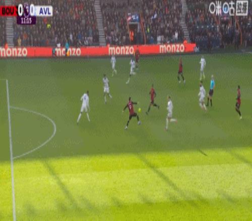 第22分鐘,摩根-羅杰斯右路勁射破門(mén),維拉1-0領(lǐng)先伯恩茅斯