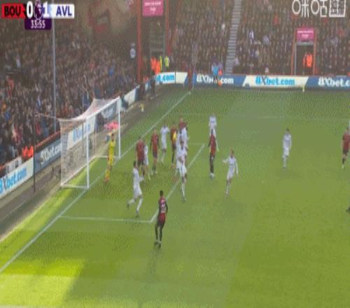 第34分鐘,拉揚(yáng)甩頭攻門(mén)擊中橫梁彈出,伯恩茅斯險(xiǎn)些扳平