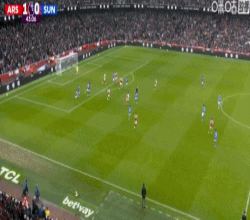 第66分鐘,哲凱賴什禁區(qū)內(nèi)臥射破門,阿森納2-0擴大領(lǐng)先