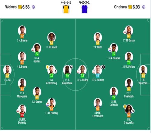 狼隊(duì)首發(fā):1-若澤·薩、2-多赫蒂(46’21-羅德里戈·戈麥斯)、3-烏戈·布埃諾、4-圣地亞哥·布埃諾、15-耶森·莫斯克拉、8-若昂·戈麥斯、47-A·戈麥斯(80’27-貝萊加德)、9-阿姆斯特朗、11-黃喜燦(43’37-克雷伊奇)、14-阿洛科達(dá)爾、36-馬特烏斯·馬內(nèi)。